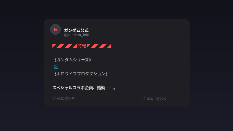 2026年3月2日、ガンダム公式X(@gundam_info)が「特報」と題して衝撃の発表を行った。