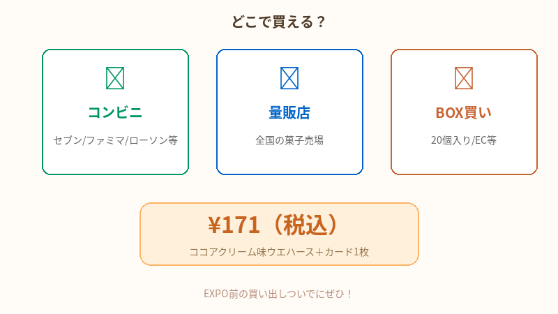 171円で推しの手書きメッセージ入りメタリックカードが手に入るのは、コスパとしてかなり優秀。FLOW GLOWの初参戦も含め、ホロライブの「今」がぎゅっと詰まった一弾だ。コンビニでも買えるので、EXPO前の買い出しのついでにぜひ。